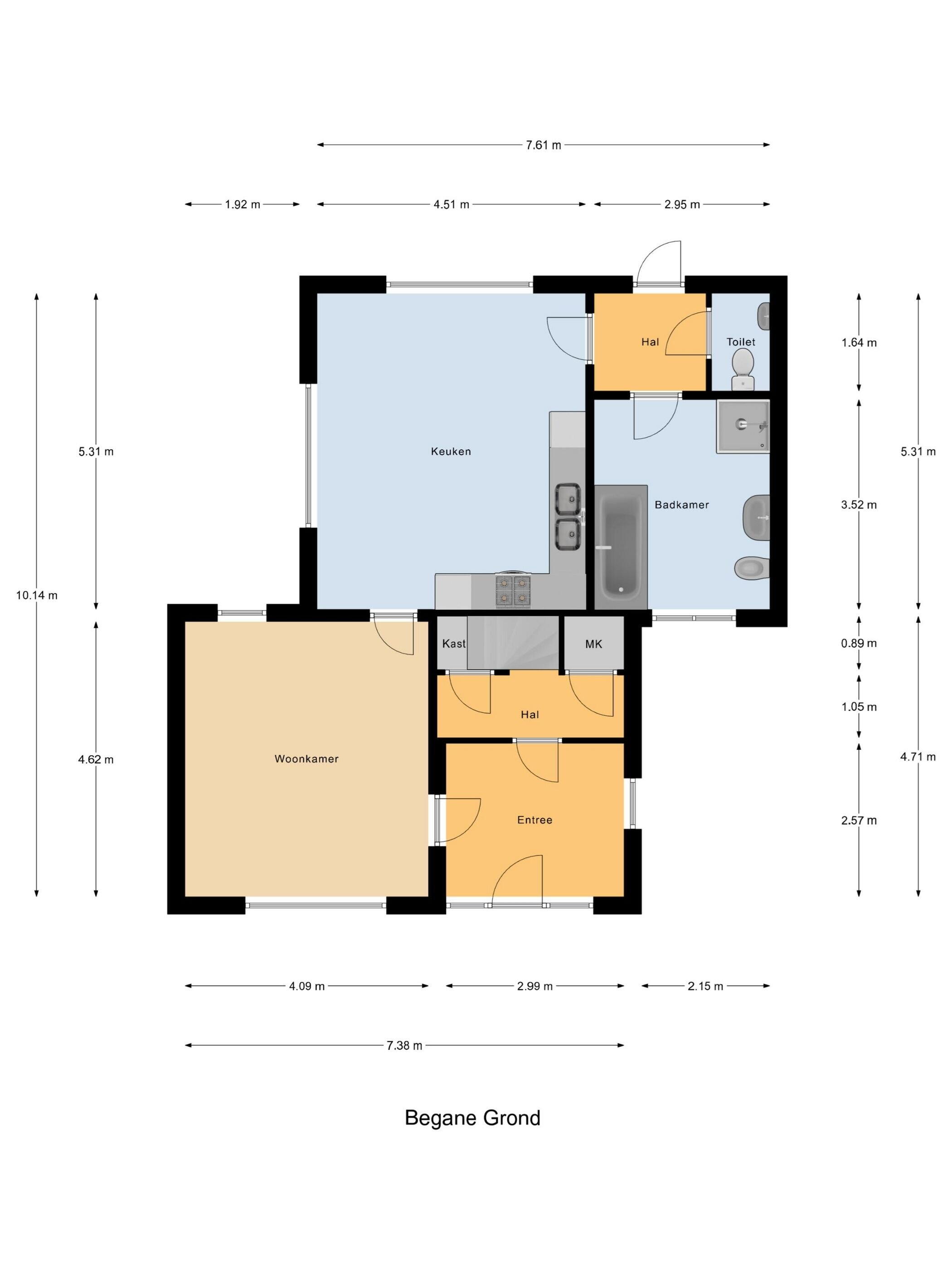Via de voortuin bereikt u de entreehal van de woning. In de hal vindt u een meterkast. U krijgt vanuit hier toegang tot de woonkamer. In de hal is plaats voor een kapstok.