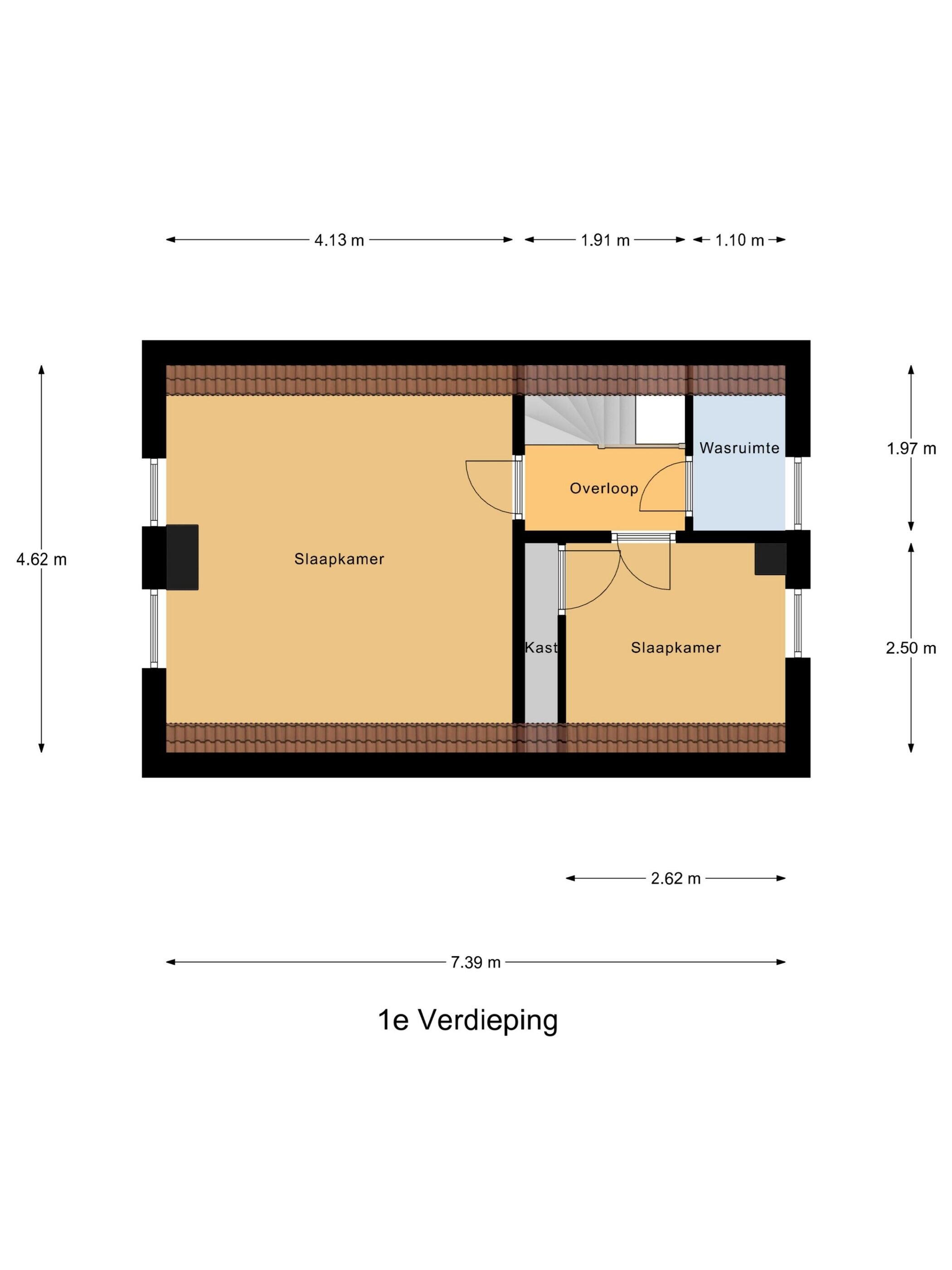 De overloop op de eerste verdieping geeft toegang tot 2 slaapkamers en een wasruimte. Een van de twee slaapkamers zijn voorzien van een inbouwkast. De slaapkamers zijn stuk voor stuk ruim en bieden plek voor een bed, kast en eventueel bureau. Eén van de slaapkamers zou eventueel ook goed ingericht kunnen worden als bijvoorbeeld logeerkamer, thuiswerkplek of kledingruimte.