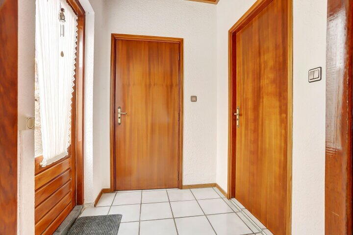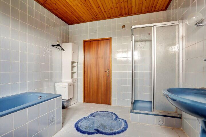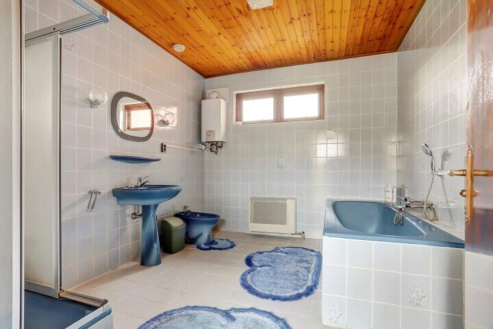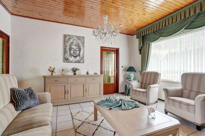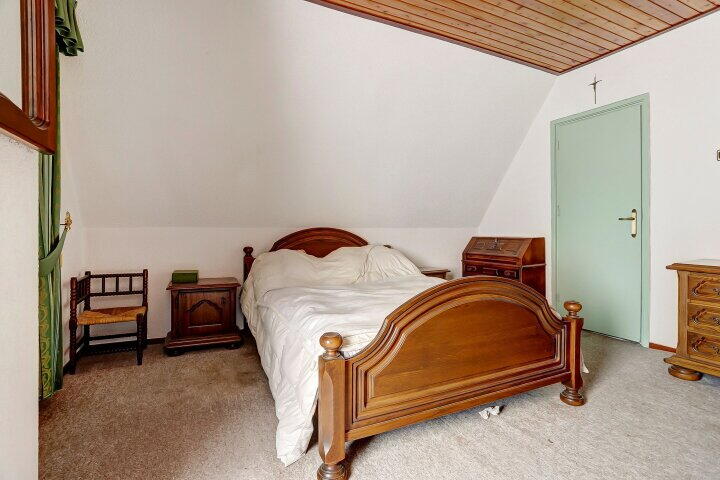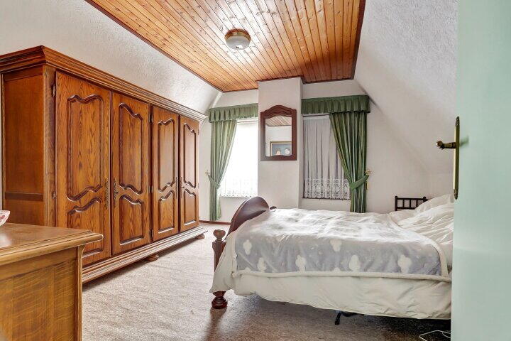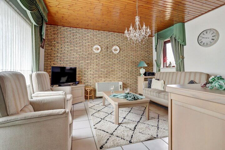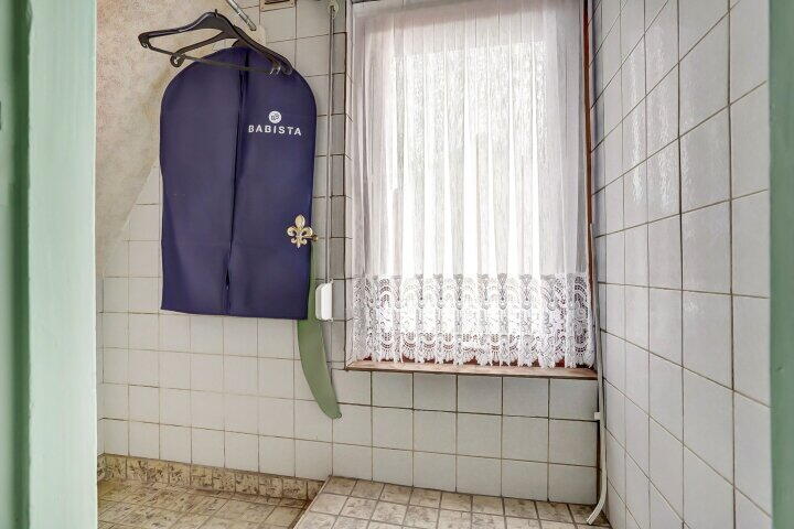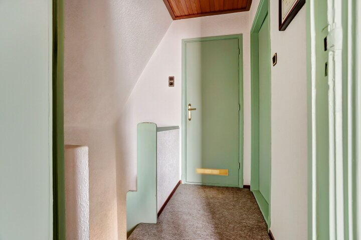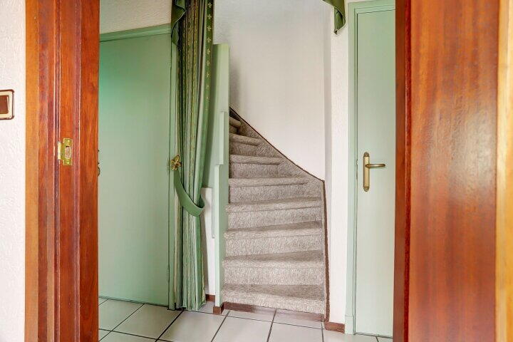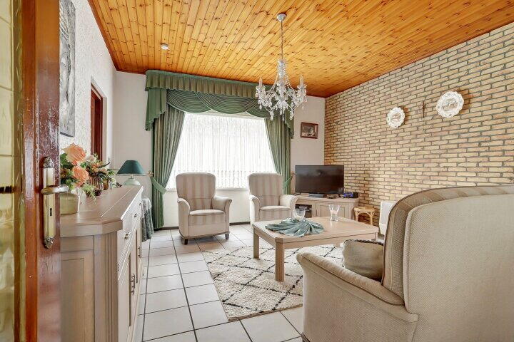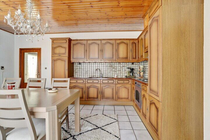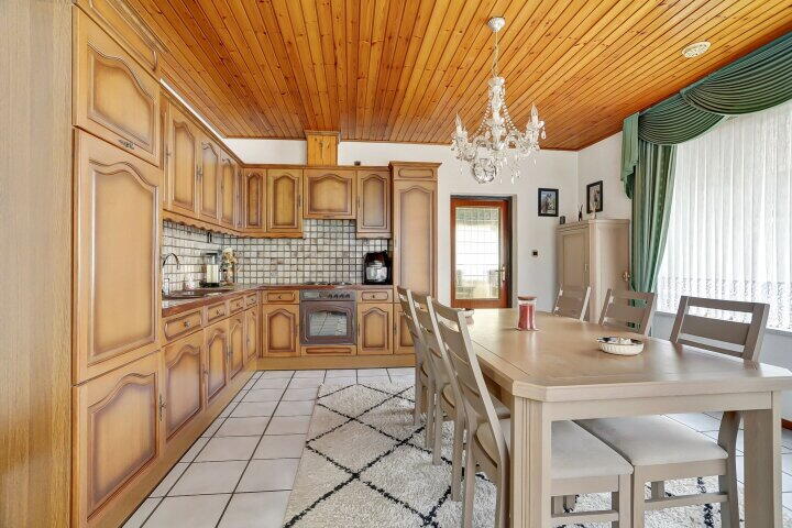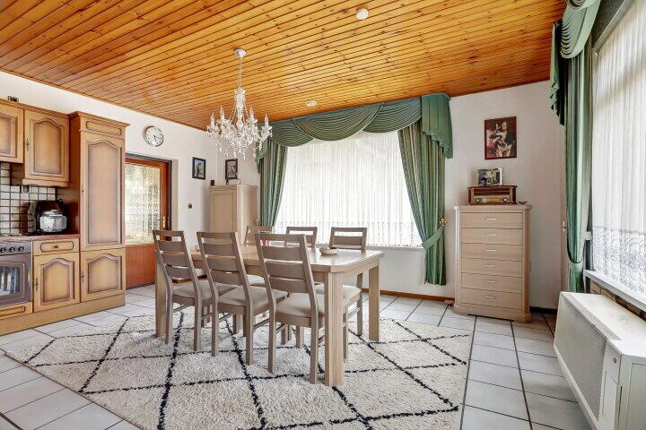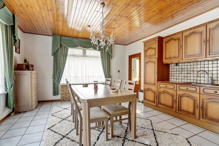 Vanuit de woonkamer krijg je toegang tot dichte keuken. Deze kamer nodigt uit tot het plaatsen van een gezellige lange eettafel, zodat u veel gasten kunt ontvangen. De keuken kijkt uit op de ruime achtertuin. Hoewel de keuken hier en daar aan vervanging toe is, beschikt de ruimte over tal van mogelijkheden om hier een mooie leefkeuken van te maken. Vanuit de keuken krijgt u toegang tot het toilet en badkamer. Vanuit de keuken krijgt u ook toegang tot de achtertuin en een garage met ruime berging.